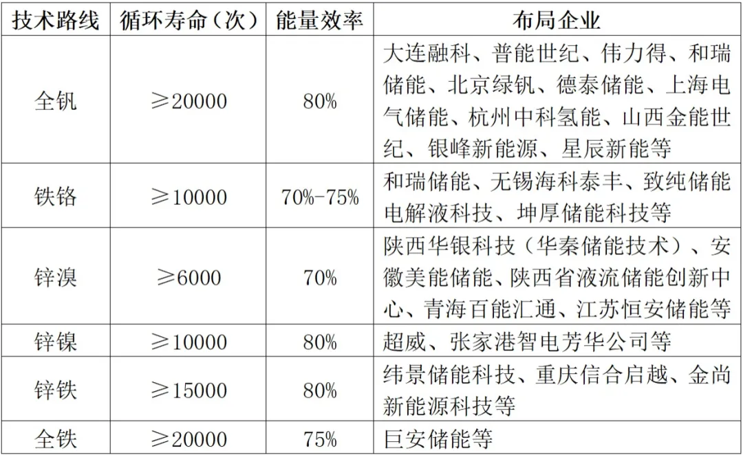 表1 液流電池不同技術(shù)路線及布局企業(yè)