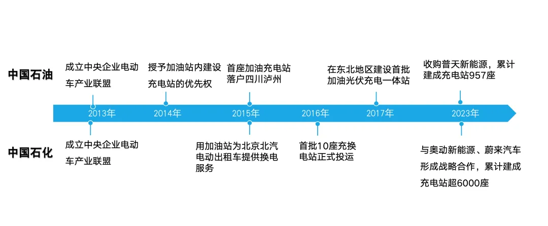 2014年,中國(guó)石油授予中國(guó)資源交通集團(tuán)在廣東、河南近2000座加油站內(nèi)建設(shè)充電站優(yōu)先權(quán);2015年,油電綜合能源站落戶四川瀘州,可同時(shí)為30輛電動(dòng)汽車提供充電服務(wù);2017年,與普天新能源、大連普達(dá)新能源啟動(dòng)合作,在東北地區(qū)建設(shè)首批加油光伏充電一體站。2015年,中國(guó)石化與北汽新能源攜手,在北京試運(yùn)行了第一座充電站,并著手利用加油站為北汽電動(dòng)出租車提供換電服務(wù);2016年,首批10座充換電站正式投入使用。