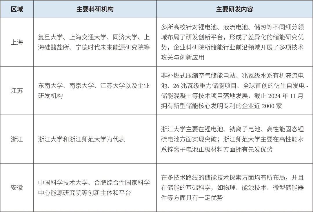 表2 長(zhǎng)三角地區(qū)新型儲(chǔ)能科技創(chuàng)新情況