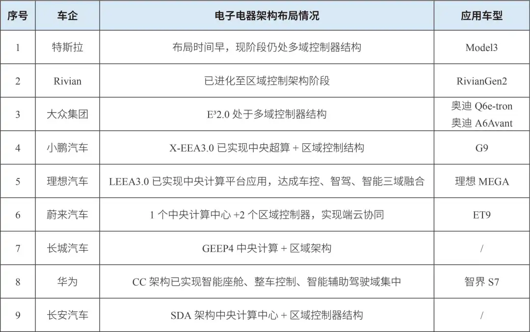 表1 車企電子電器架構(gòu)布局進(jìn)展