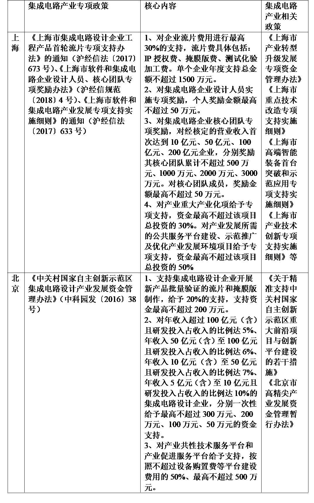 表3:上海及北京集成電路相關(guān)政策對(duì)比