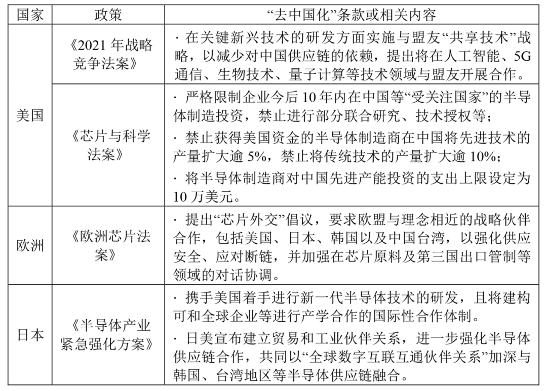 表1:美歐日等國家和地區(qū)的半導體法案中“去中國化”條款
