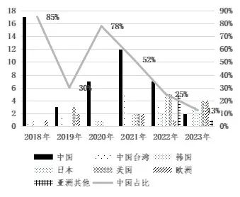 圖1 2018年-2023年全球新增晶圓廠所在國家及地區(qū)分布