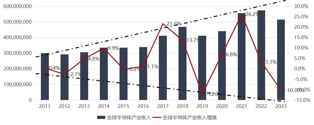 圖2 近10年來全球半導體產(chǎn)業(yè)銷售收入及增速變化