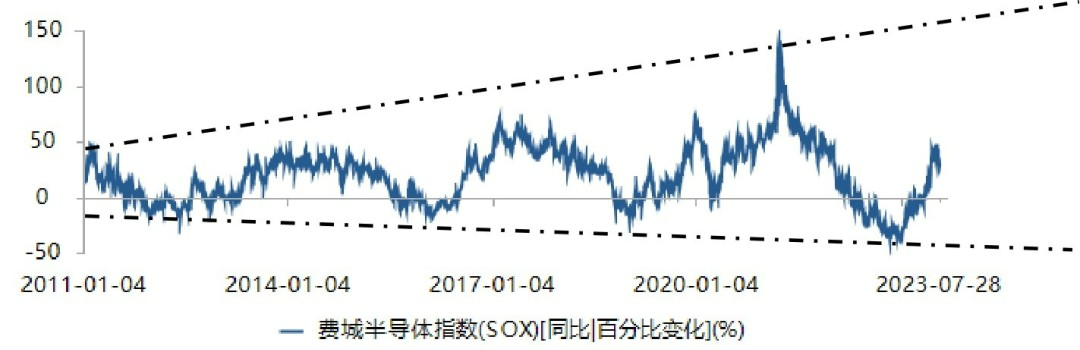 圖3 近10年來費城半導體指數(shù)同比變化