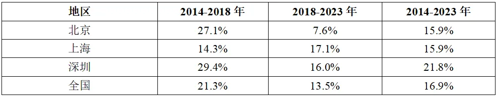 表格信息來(lái)源:北國(guó)咨根據(jù)北京、上海、深圳各協(xié)會(huì)數(shù)據(jù)整理測(cè)算