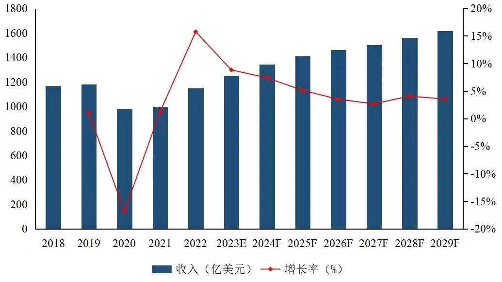 根據(jù)第三方機構(gòu)整理和預(yù)測,在全球范圍,2022年全球航空維修市場規(guī)模為1149.27億美元,預(yù)測到2029年將達(dá)到1616.73億美元,2023年到2029年復(fù)合增長率約4.37%。在全國層面,近幾年,中國航空維修產(chǎn)業(yè)得到了蓬勃發(fā)展,航空維修市場規(guī)模從2018年的94.37億美元增長到2022年的109.95億美元。預(yù)測2023年到2029年年復(fù)合增長率約6%,航空維修產(chǎn)業(yè)迎來穩(wěn)步增長階段。