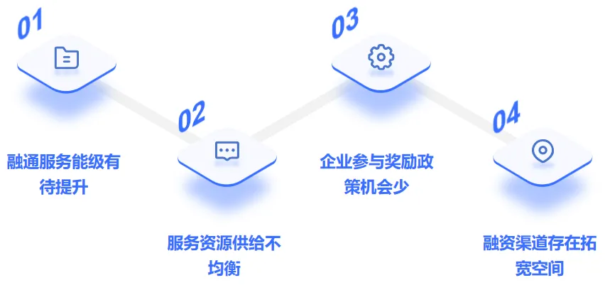 產(chǎn)業(yè)園區(qū)服務(wù)功能局限,過度依賴傳統(tǒng)銀企對(duì)接模式,股權(quán)融資、政策性融資工具(如專精特新專項(xiàng)貸)等多元渠道整合能力不足,融資路徑狹窄;信息匹配低效,未建立專精特新企業(yè)技術(shù)價(jià)值評(píng)估與金融機(jī)構(gòu)風(fēng)險(xiǎn)偏好動(dòng)態(tài)匹配的數(shù)字化平臺(tái),導(dǎo)致輕資產(chǎn)、高成長(zhǎng)型企業(yè)難以突破銀企之間“技術(shù)看不懂、風(fēng)險(xiǎn)算不清”的信息鴻溝。