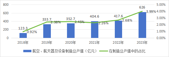 2《上海民用航空產(chǎn)業(yè)鏈建設(shè)三年行動(dòng)計(jì)劃(2022-2024年)》提出,到2024年,民用航空產(chǎn)業(yè)產(chǎn)值規(guī)模超過(guò)600億元;上海統(tǒng)計(jì)局:2019年,本市航空裝備生產(chǎn)持續(xù)增長(zhǎng),實(shí)現(xiàn)工業(yè)總產(chǎn)值296.55億元,比上年增長(zhǎng)0.7%。其中,飛機(jī)制造業(yè)保持平穩(wěn)增長(zhǎng)拉動(dòng)航空裝備總產(chǎn)值增長(zhǎng)3.0個(gè)百分點(diǎn)
