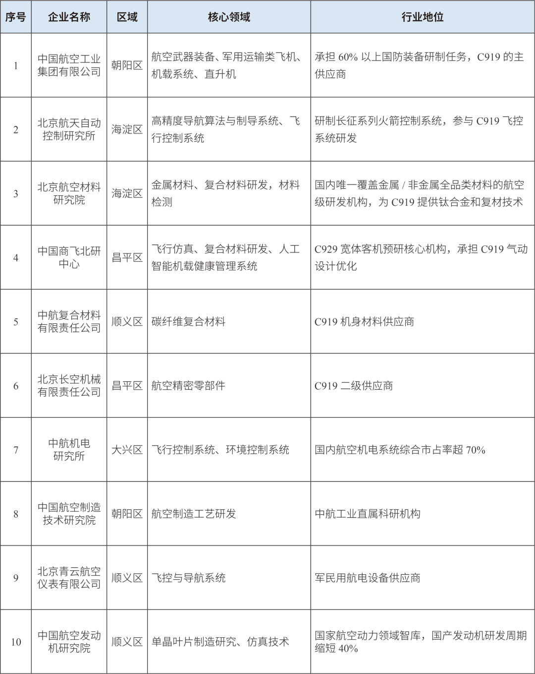 表1 北京市航空制造業(yè)重點(diǎn)企業(yè)清單(部分)