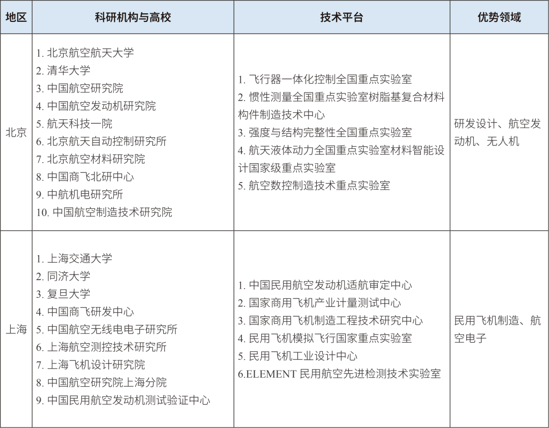 在研發(fā)設(shè)計(jì)和高端制造方面,上海依托經(jīng)濟(jì)優(yōu)勢(shì)和產(chǎn)業(yè)基礎(chǔ),以整機(jī)集成等應(yīng)用研發(fā)和商業(yè)化生產(chǎn)為主;北京依托科研機(jī)構(gòu)和高校,以關(guān)鍵零部件和無(wú)人機(jī)的基礎(chǔ)研究及高端生產(chǎn)為主,制造產(chǎn)值低于上海。上海作為我國(guó)民用航空產(chǎn)業(yè)創(chuàng)新策源地,是C919研發(fā)設(shè)計(jì)的核心基地,承擔(dān)了大部分總體設(shè)計(jì)和集成研發(fā)任務(wù),其中中國(guó)商飛上海飛機(jī)設(shè)計(jì)研究院作為國(guó)產(chǎn)大飛機(jī)研制核心力量,主導(dǎo)C919大型客機(jī)、ARJ21新支線飛機(jī)等標(biāo)志性機(jī)型的設(shè)計(jì)研發(fā),形成覆蓋全壽命周期的工業(yè)設(shè)計(jì)能力。北京作為我國(guó)航空研發(fā)設(shè)計(jì)的核心策源地,聚焦航空電子設(shè)備與系統(tǒng)、航空動(dòng)力、適航取證等關(guān)鍵領(lǐng)域,在飛行器氣動(dòng)設(shè)計(jì)、智能控制系統(tǒng)、航空發(fā)動(dòng)機(jī)等領(lǐng)域?qū)崿F(xiàn)多項(xiàng)核心技術(shù)突破,如中國(guó)航發(fā)集團(tuán)牽頭承擔(dān)“兩機(jī)”(航空發(fā)動(dòng)機(jī)和燃?xì)廨啓C(jī))等國(guó)家科技重大專項(xiàng),通過(guò)AES100民用渦軸發(fā)動(dòng)機(jī)等標(biāo)志性產(chǎn)品,實(shí)現(xiàn)從“跟跑”到“并跑”的跨越。