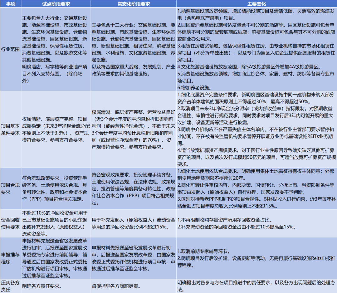 表2 基礎設施領域不動產(chǎn)投資信托基金(REITs)項目申報要求變化對比表