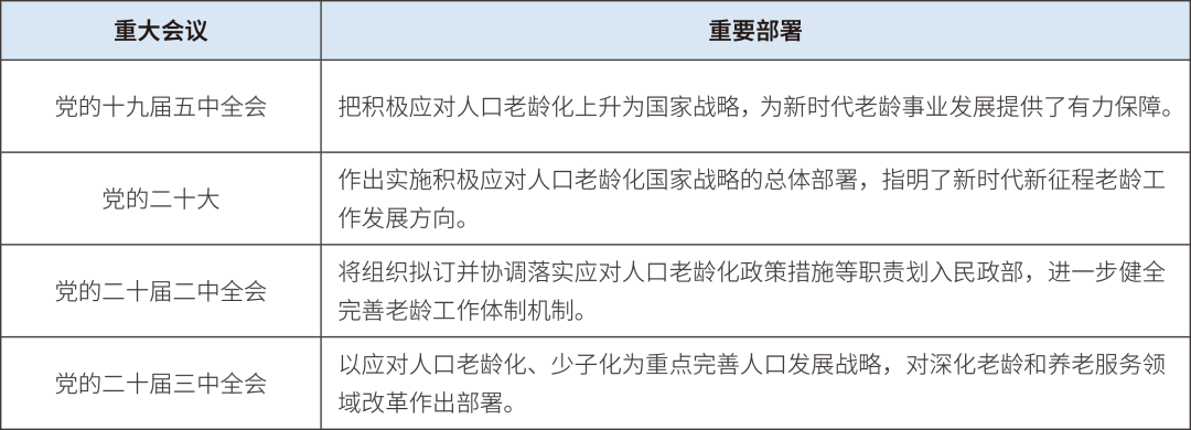 表1 國(guó)家老齡化重大戰(zhàn)略部署匯總