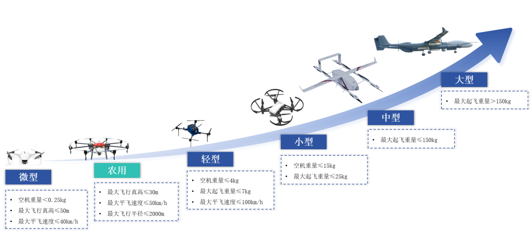 我國(guó)無(wú)人機(jī)管理基本形成“農(nóng)業(yè)、微輕型豁免、小中大型嚴(yán)格”的分層體系。根據(jù)《無(wú)人駕駛航空器飛行管理暫行條例》規(guī)定,無(wú)人機(jī)被劃分為微型、輕型、小型、中型和大型五個(gè)類別。其中,微型、輕型無(wú)人機(jī)由于其體積小、重量輕,主要用于娛樂和拍攝等輕量級(jí)應(yīng)用,無(wú)需取得操控員執(zhí)照,同時(shí),從事常規(guī)農(nóng)用無(wú)人駕駛航空器作業(yè)飛行活動(dòng)的人員也無(wú)需取得操控員執(zhí)照,但應(yīng)當(dāng)由農(nóng)用無(wú)人駕駛航空器系統(tǒng)生產(chǎn)者按照國(guó)務(wù)院民用航空、農(nóng)業(yè)農(nóng)村主管部門規(guī)定的內(nèi)容進(jìn)行培訓(xùn)和考核,合格后取得操作證書。