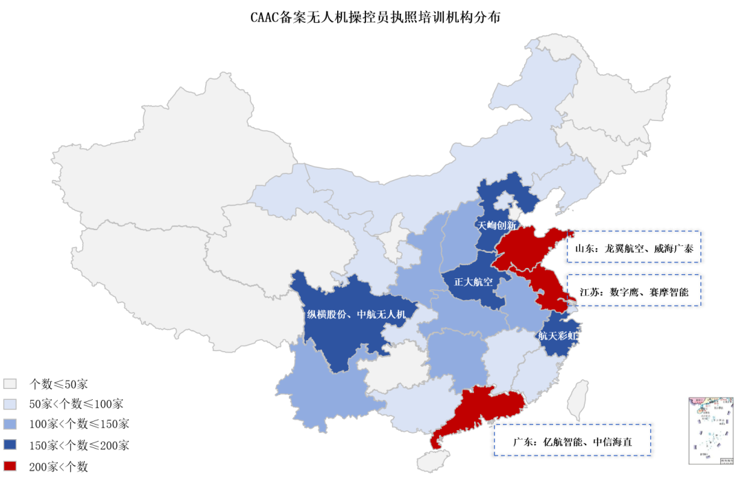 圖3 我國(guó)CAAC備案的無(wú)人機(jī)培訓(xùn)機(jī)構(gòu)分布情況