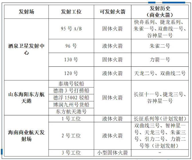 表1 商業(yè)火箭主要發(fā)射場(chǎng)發(fā)射情況
