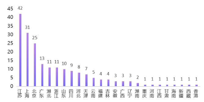 圖1 獲批上市國(guó)產(chǎn)創(chuàng)新藥的區(qū)域分布情況