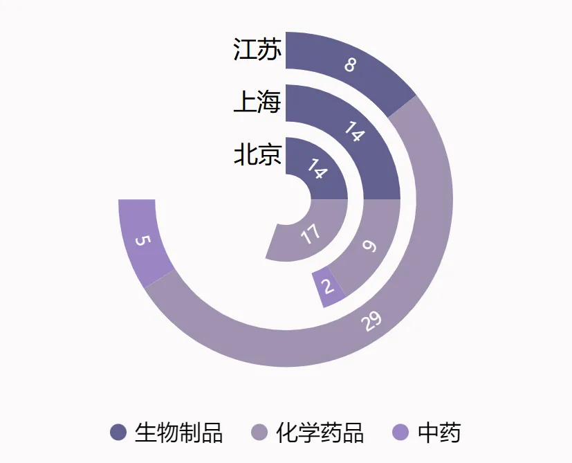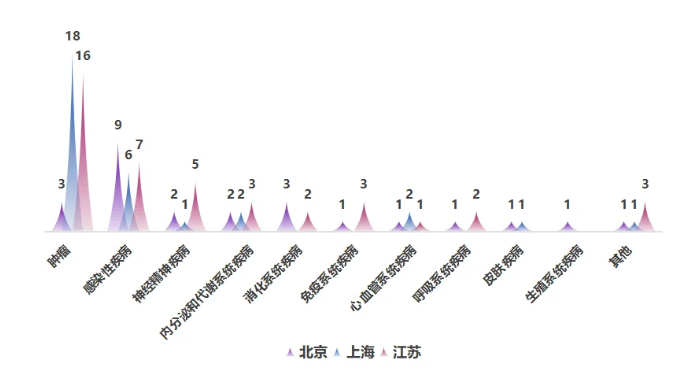 二、治療領(lǐng)域:北京“多元布局”,蘇滬“相對(duì)集中”