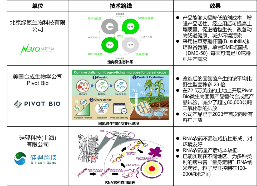 合成生物學(xué)技術(shù)與農(nóng)業(yè)領(lǐng)域的結(jié)合日益緊密,并在部分方向上已有商業(yè)化成果。目前,農(nóng)業(yè)合成生物學(xué)的基礎(chǔ)研究主要集中在人工細(xì)胞合成、細(xì)胞工廠、種質(zhì)改良、二氧化碳固定、生物固氮和農(nóng)業(yè)環(huán)境優(yōu)化等方面,應(yīng)用研究主要集中在植物天然產(chǎn)物開發(fā)、農(nóng)作物性狀改良、病蟲害防控、肥料生產(chǎn)、飼料及添加劑制備等方面,目前能夠或接近實(shí)現(xiàn)商業(yè)化的應(yīng)用主要集中在作物育種、固氮肥料、農(nóng)藥生物制造等領(lǐng)域。相比之下,生物固碳、生物固氮和代謝途徑改造等仍處于初期概念階段。