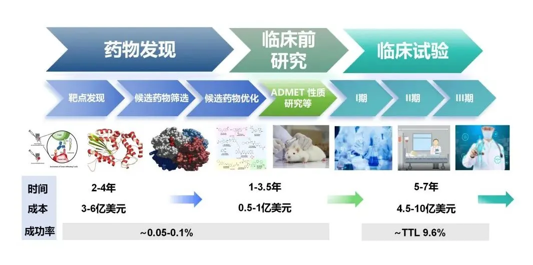 相關(guān)數(shù)據(jù)表示,至今60%疾病無有效治療藥物,大量臨床需求未被滿足,業(yè)界迫切需要新的研發(fā)工具和范式加快新藥研發(fā)上市,AI+新藥研發(fā)進(jìn)入關(guān)注視野。目前AI主要應(yīng)用在靶點(diǎn)發(fā)現(xiàn)、化合物合成、化合物篩選、晶型預(yù)測、適配患者招募等環(huán)節(jié)。