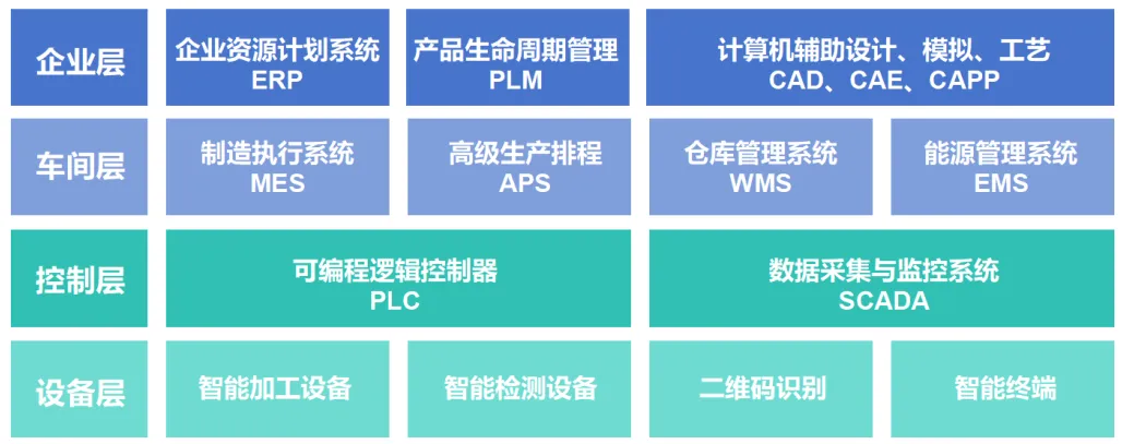 醫(yī)藥企業(yè)數(shù)字化車間頂層設(shè)計架構(gòu)當(dāng)前主要包含設(shè)備層、控制層、車間層和企業(yè)層四層,旨在通過智能制造關(guān)鍵技術(shù)創(chuàng)新和智能化信息系統(tǒng)集成創(chuàng)新,實現(xiàn)車間的數(shù)字化、智能化升級。