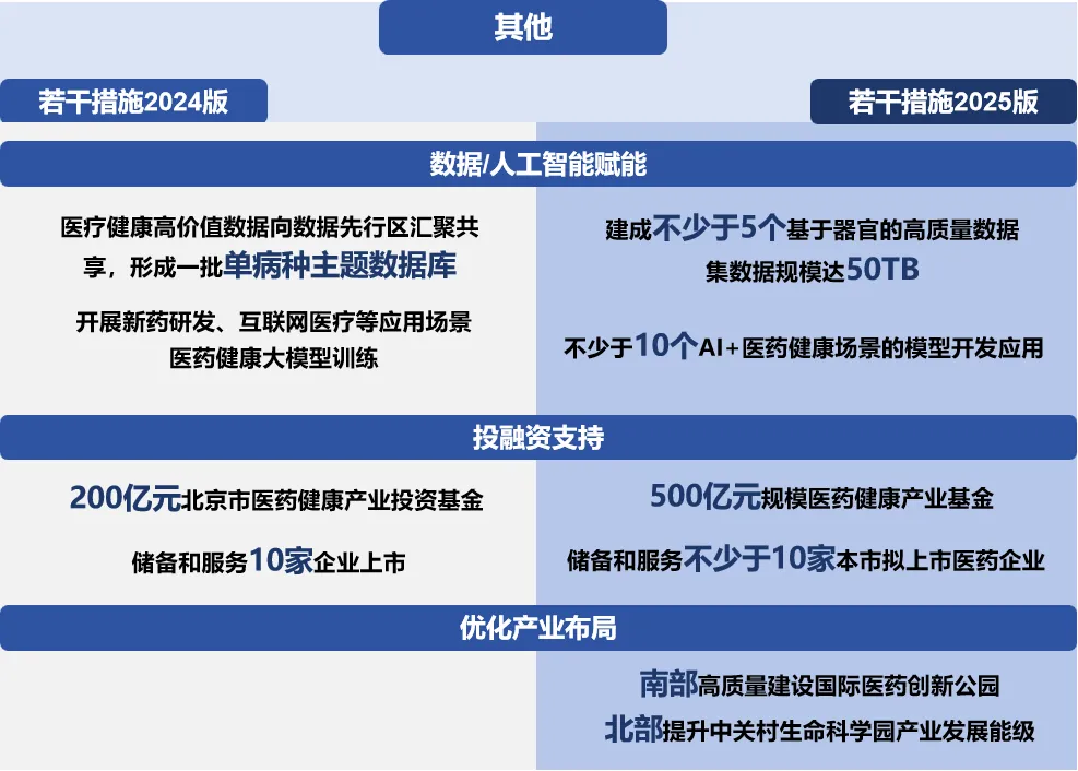 4月7日,北京市醫(yī)保局、市衛(wèi)生健康委等九部門聯(lián)合發(fā)布《北京市支持創(chuàng)新醫(yī)藥高質(zhì)量發(fā)展若干措施(2025年)》(簡(jiǎn)稱《若干措施2025版》),從創(chuàng)新研發(fā)、臨床試驗(yàn)、審評(píng)審批、生產(chǎn)制造、流通貿(mào)易、臨床應(yīng)用等全鏈條提出新一輪32條措施,持續(xù)完善“一條鏈”服務(wù),進(jìn)一步推動(dòng)北京市“萬(wàn)億”醫(yī)藥健康產(chǎn)業(yè)再上新臺(tái)階。這是北京市醫(yī)保局、市衛(wèi)生健康委等九部門連續(xù)第二年共同出臺(tái)支持創(chuàng)新醫(yī)藥高質(zhì)量發(fā)展的專項(xiàng)政策,2024年4月17日發(fā)布的《北京市支持創(chuàng)新醫(yī)藥高質(zhì)量發(fā)展若干措施(2024年)》(簡(jiǎn)稱《若干措施》)實(shí)施成效顯著。本文對(duì)兩版政策進(jìn)行對(duì)比,結(jié)合北京支持創(chuàng)新醫(yī)藥發(fā)展的實(shí)際成效,梳理《若干措施2025版》的政策亮點(diǎn)。