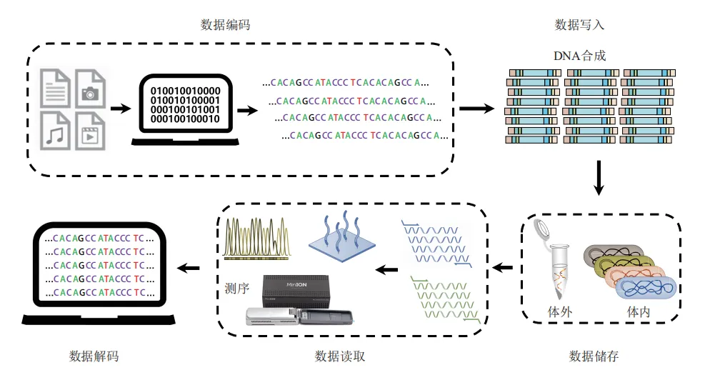 圖1 DNA數(shù)據(jù)存儲(chǔ)及讀取流程圖